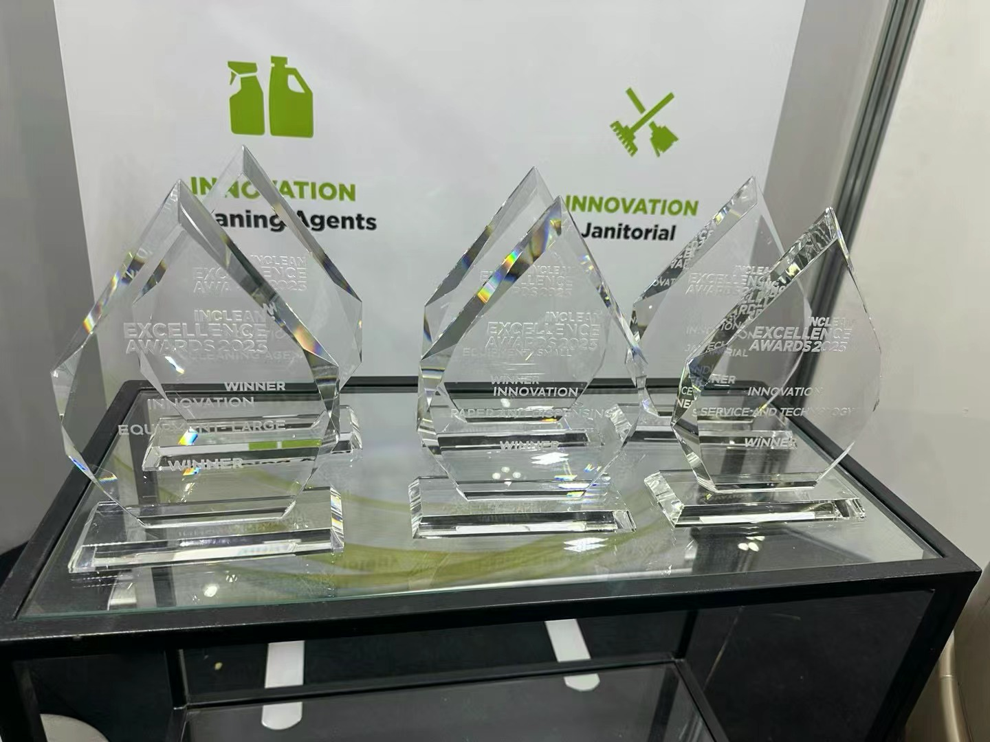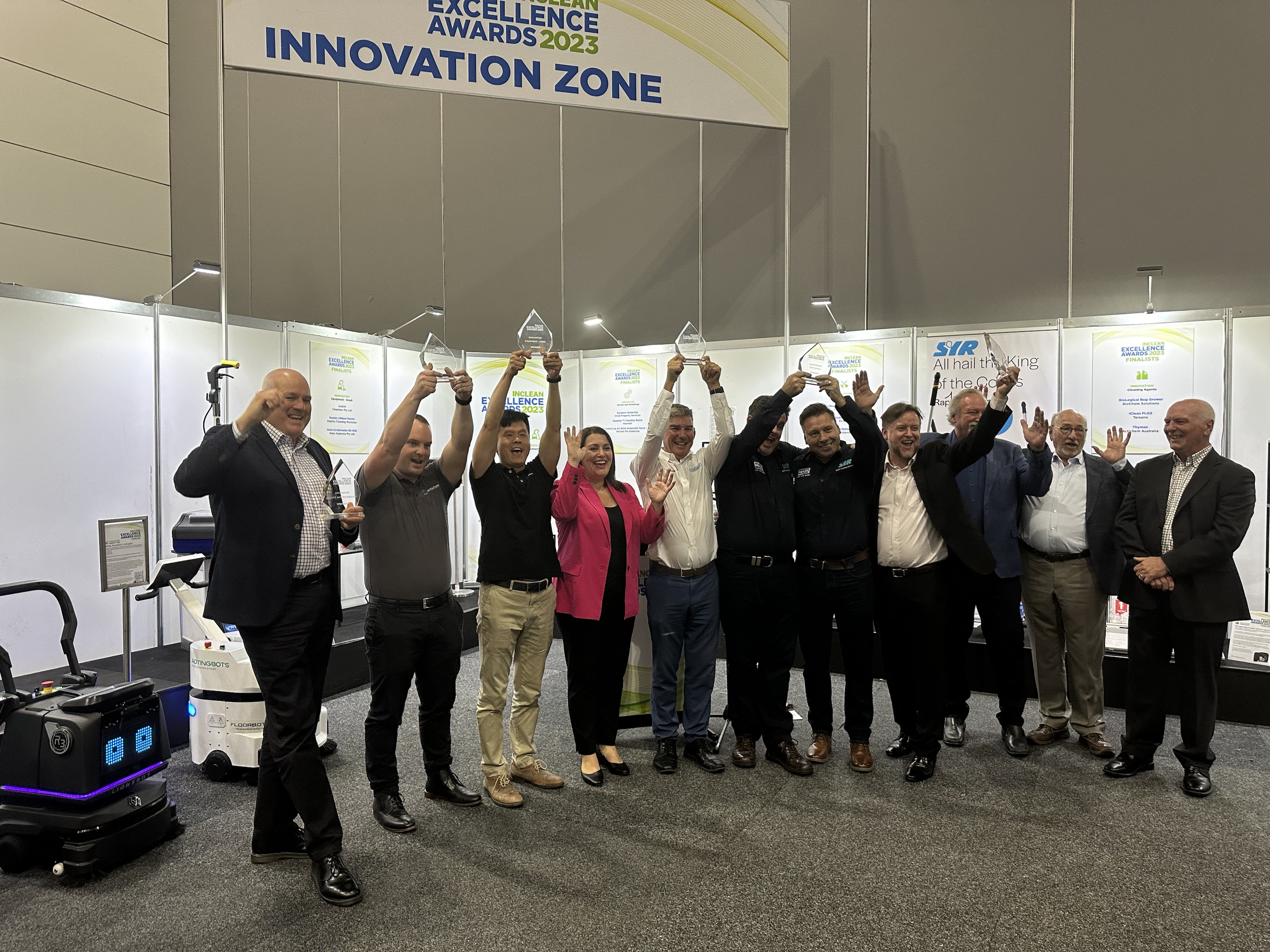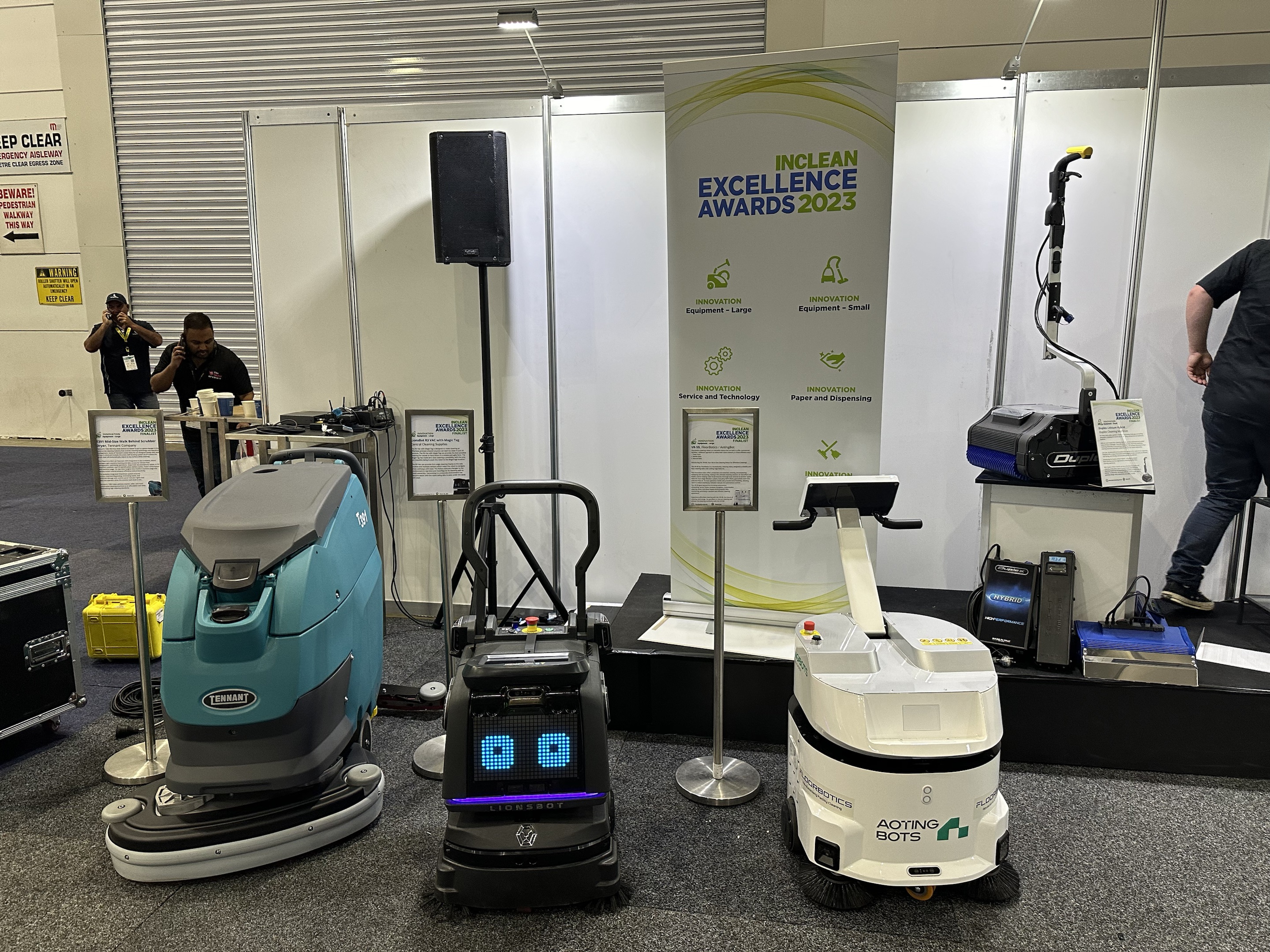 哈工澳汀商用无水清洁机器人与国际清洁巨头Tennant、新加坡机器人创新代表Lionsbot一同角逐2023年INCLEAN创新卓越奖,最终哈工澳汀荣获INCLEAN创新卓越奖(large设备类唯一奖项)。