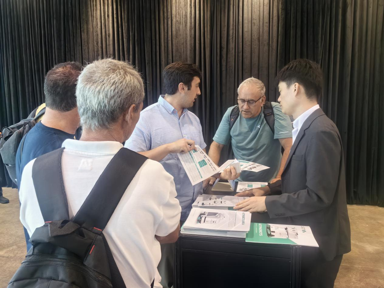 展会现场,SW55穿梭在展区内打扫清洁,电量不足时就自动回到“充电站”补给能量,吸引了众多观众尤其是外国观众的目光,纷纷驻足咨询。团队成员详细解答了客户的问题,并展示了机器人的操作过程和清洁效果。客户对SW55的高效性能和便捷操作给予了高度评价。