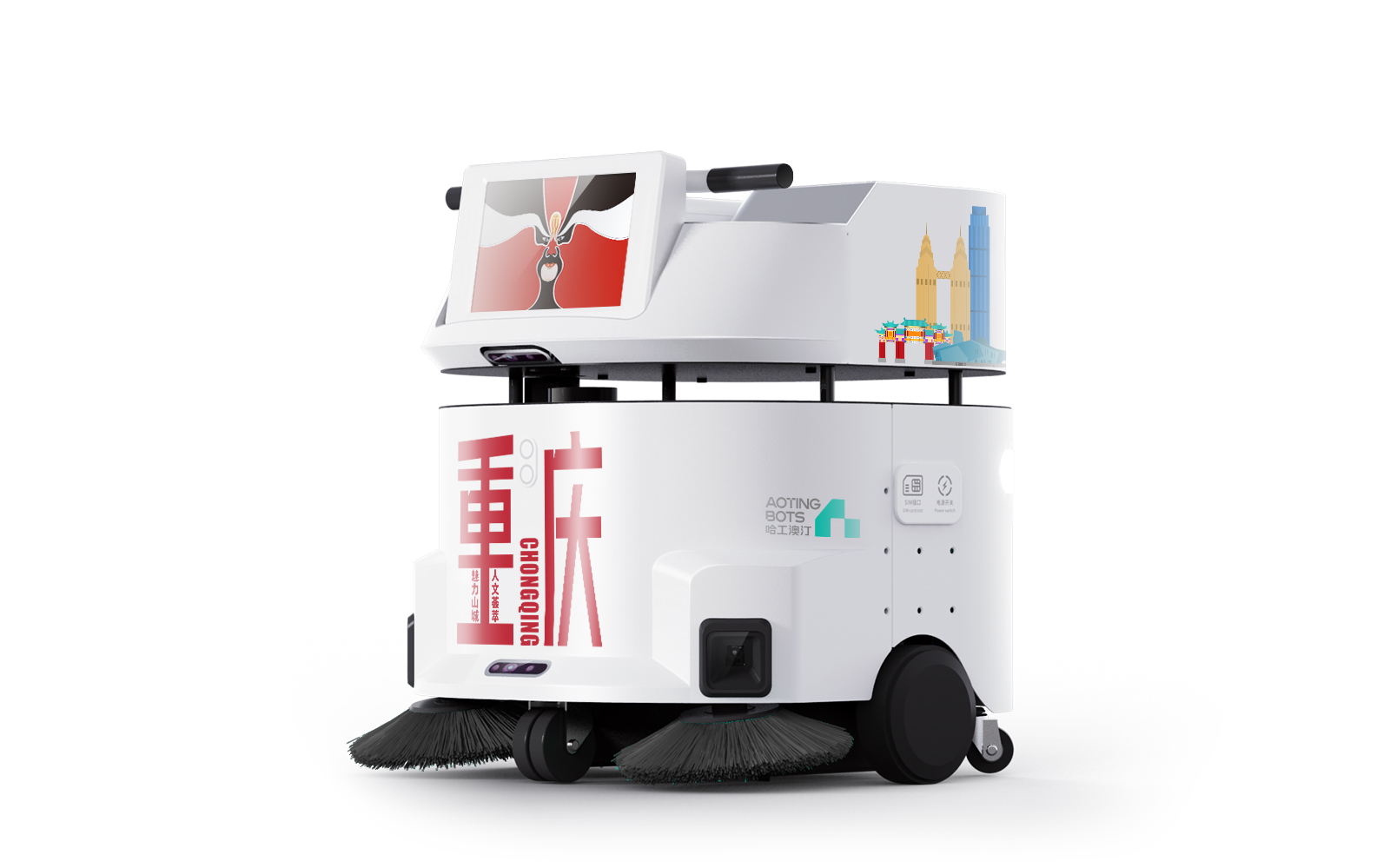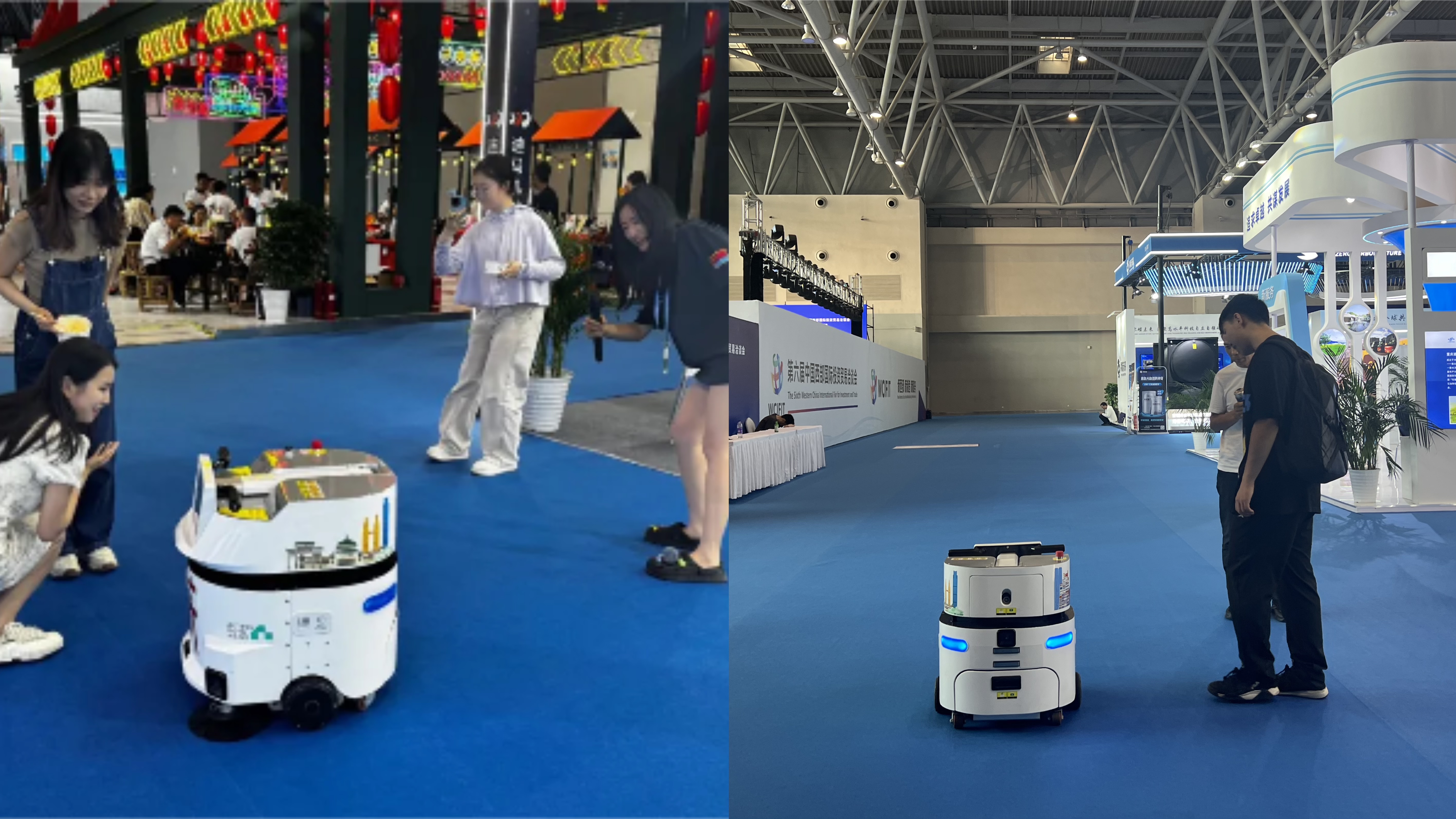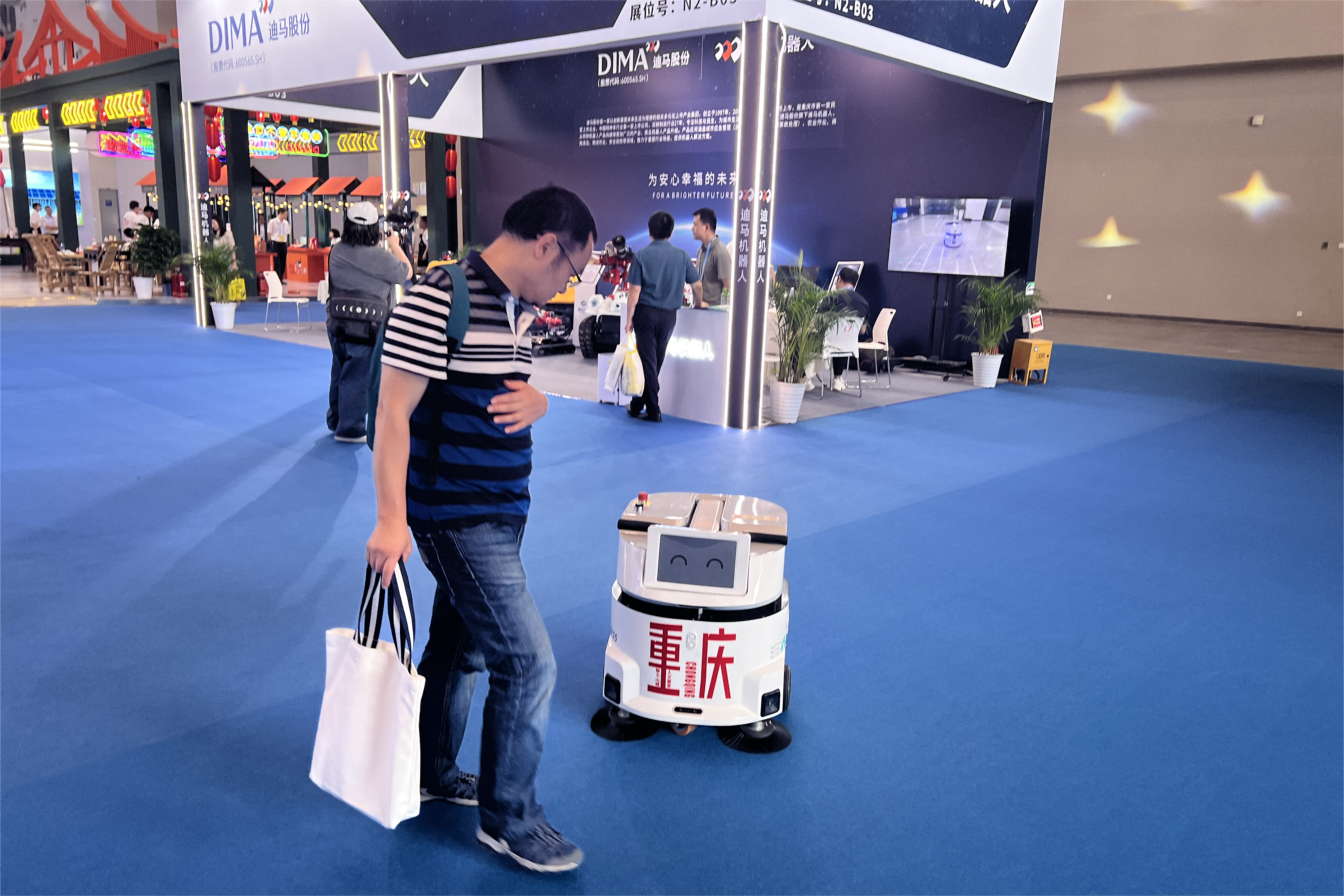 本次西洽会上,商用无水清洁机器人以其独特的“重庆限定版”外形,和高效的无水清洁能力,成为了展会现场的“团宠”。